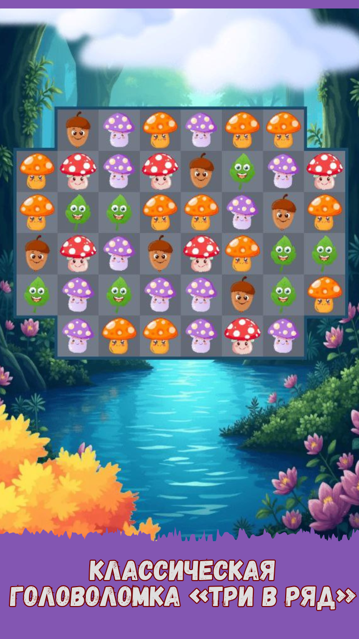 Погрузитесь в волшебный лес с увлекательной мобильной игрой «Грибная Лихорадка три в ряд»!